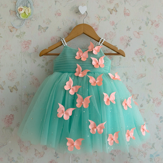 Cutedoll Mint Net Sparkle with butterfly kids Girls Dress