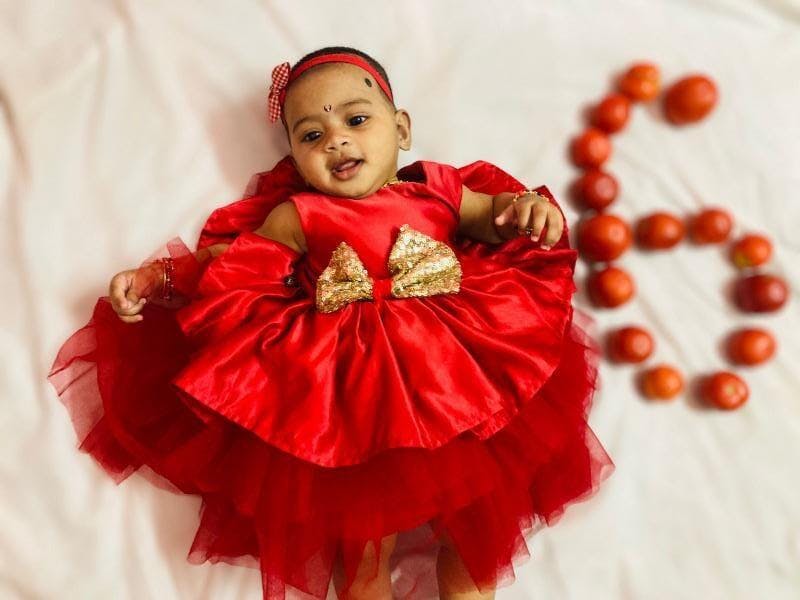 Cutedoll Red Color Net Birthday Dress For Baby Girl