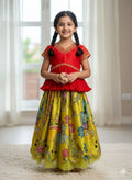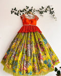 Bright, bold, and breathtaking — this Orange Embroidered Peplum Top & Lime Green Hand-Painted Lehenga Set for Girls is designed to make every celebration memorable. The vibrant orange top is crafted with rich embroidery, delicate beadwork, and a stylish pleated peplum silhouette, offering a luxurious ethnic look.